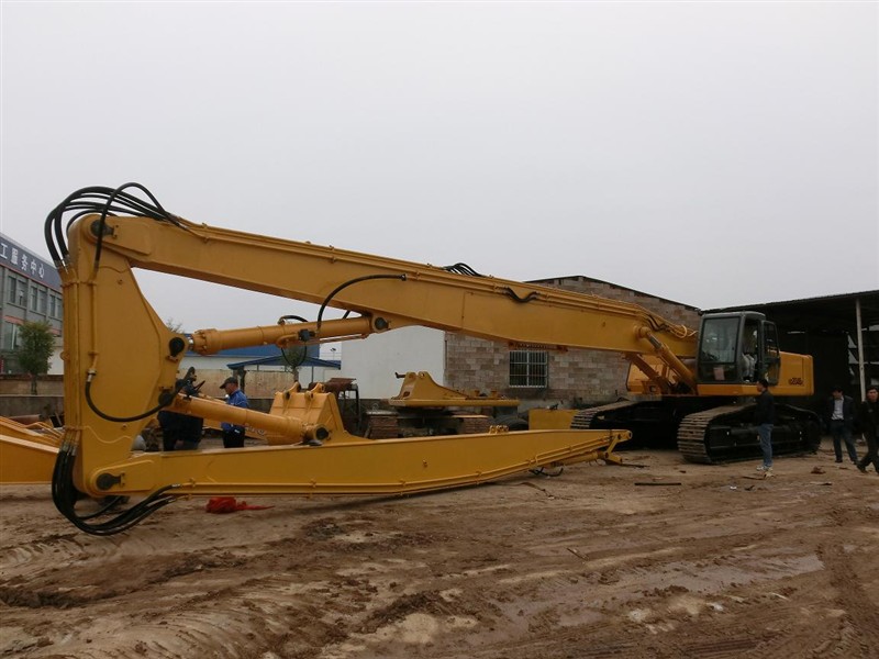 2、挖掘機拆樓臂的加長臂內安裝有內部緩沖板得以承受張力負載,保證了加長臂的結構強度、使用機能和質量,延長了挖掘機和挖掘機加長臂的使用壽命。